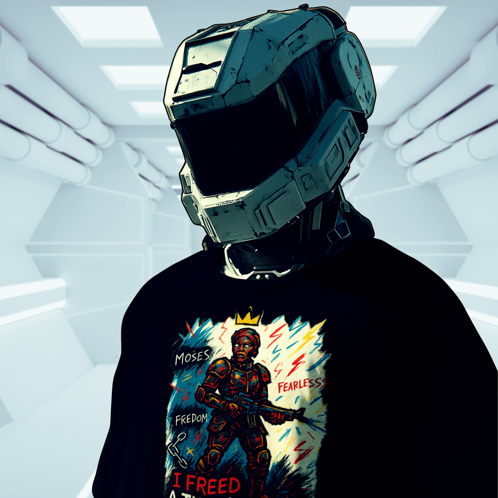 Harriet Tubman, reimagined in our Ascendant series with crown and lightning as symbols of courage and clarity. Soft organic cotton with a midweight drape, color that holds, and a print built for repeat wear. Wear it as a daily reminder to move with purpose.
